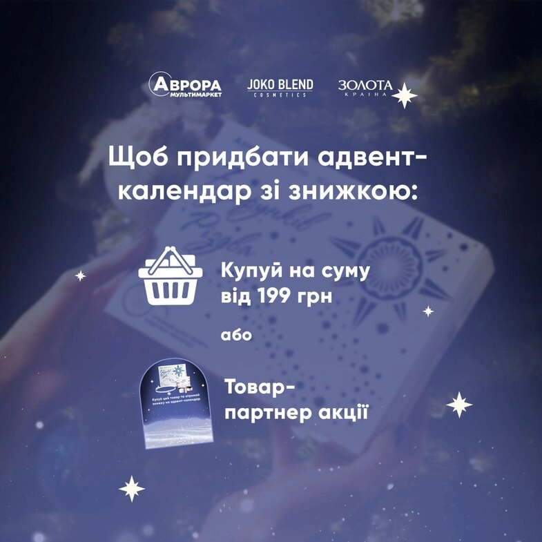 Мережа мультимаркетів «Аврора», український виробник доглядової косметики Joko Blend та ювелірна мережа Золота Країна презентують святковий адвент – календар «7 дарунків Різдва».