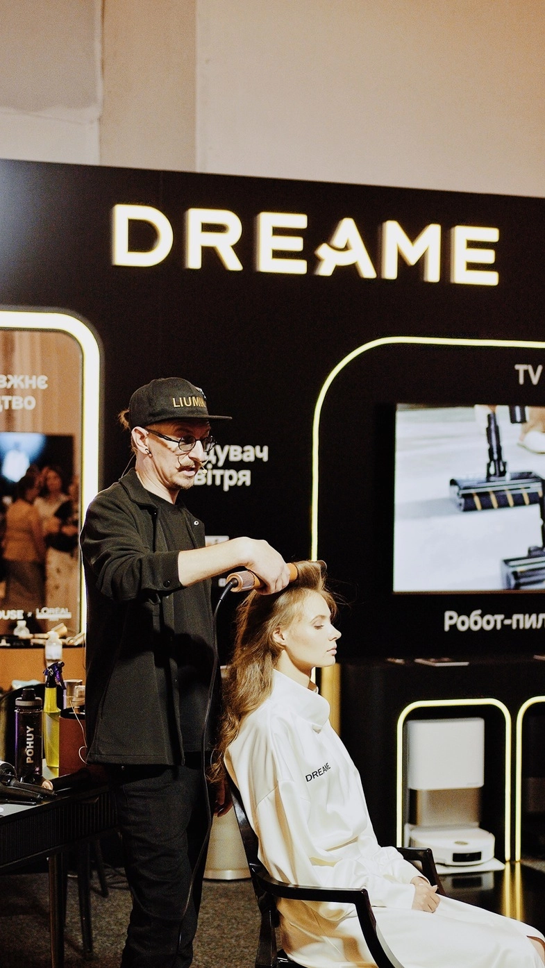 Одна з основних активностей Dreame на події — майстерклас від українського стиліста та перукаря Юрія Люміна. Майстер поділився професійними секретами укладок та техніками використання новітніх стайлерів Dreame Airstyle Pro. Цей інноваційний продукт став улюбленцем гостей заходу, адже він поєднує в собі високу потужність та турботу про здоров’я волосся.