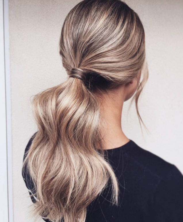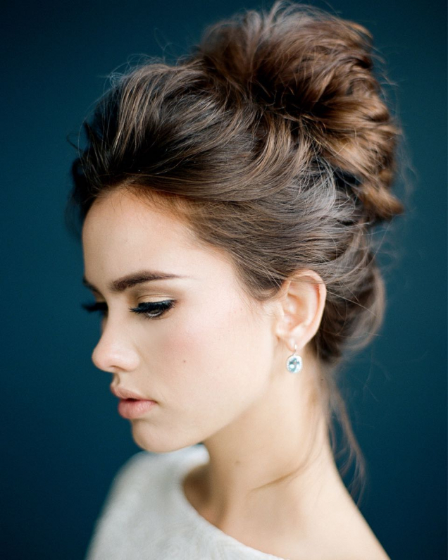 Якщо ваша сукня в підлогу потребує більш елегантної та стриманої зачіски, тоді зробіть ставку на об’ємний пучок. Не менш розкішно виглядатиме високий хвіст з об’ємом на маківці та хвилястими пасмами.