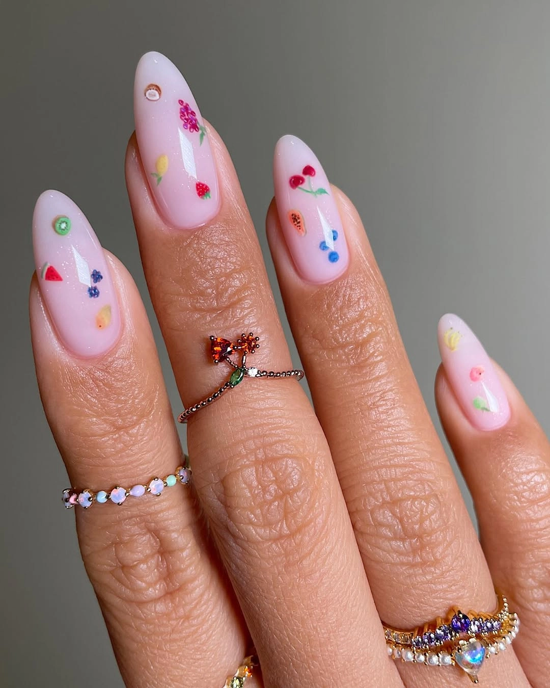 «Окрім малюнків, у фруктовому манікюрі також часто використовують моделювальний гель, який допомагає створити ефект «справжніх» ягід і шматочків фруктів на нігтях», — зазначає нейлекспертка з Лос-Анджелеса Сігурні Нуньєс.