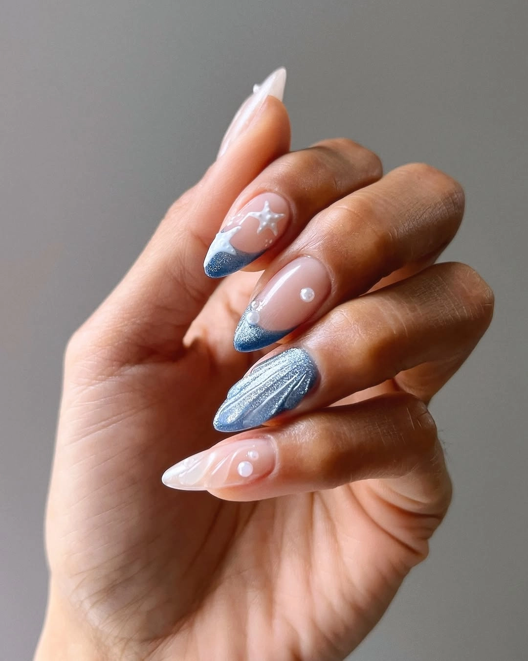 Морський манікюр — це про креативність і свободу вираження. Головна його особливість — відмова від нудного однотонного покриття на користь текстур, об’ємів і нестандартних деталей. Тут немає чітких правил: на нігтях можуть з’являтися елементи, що нагадують про океан, пісок і тропічні острови.