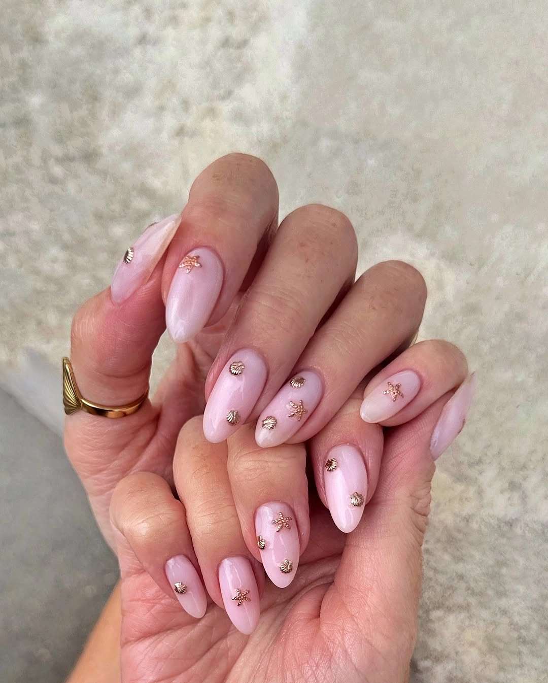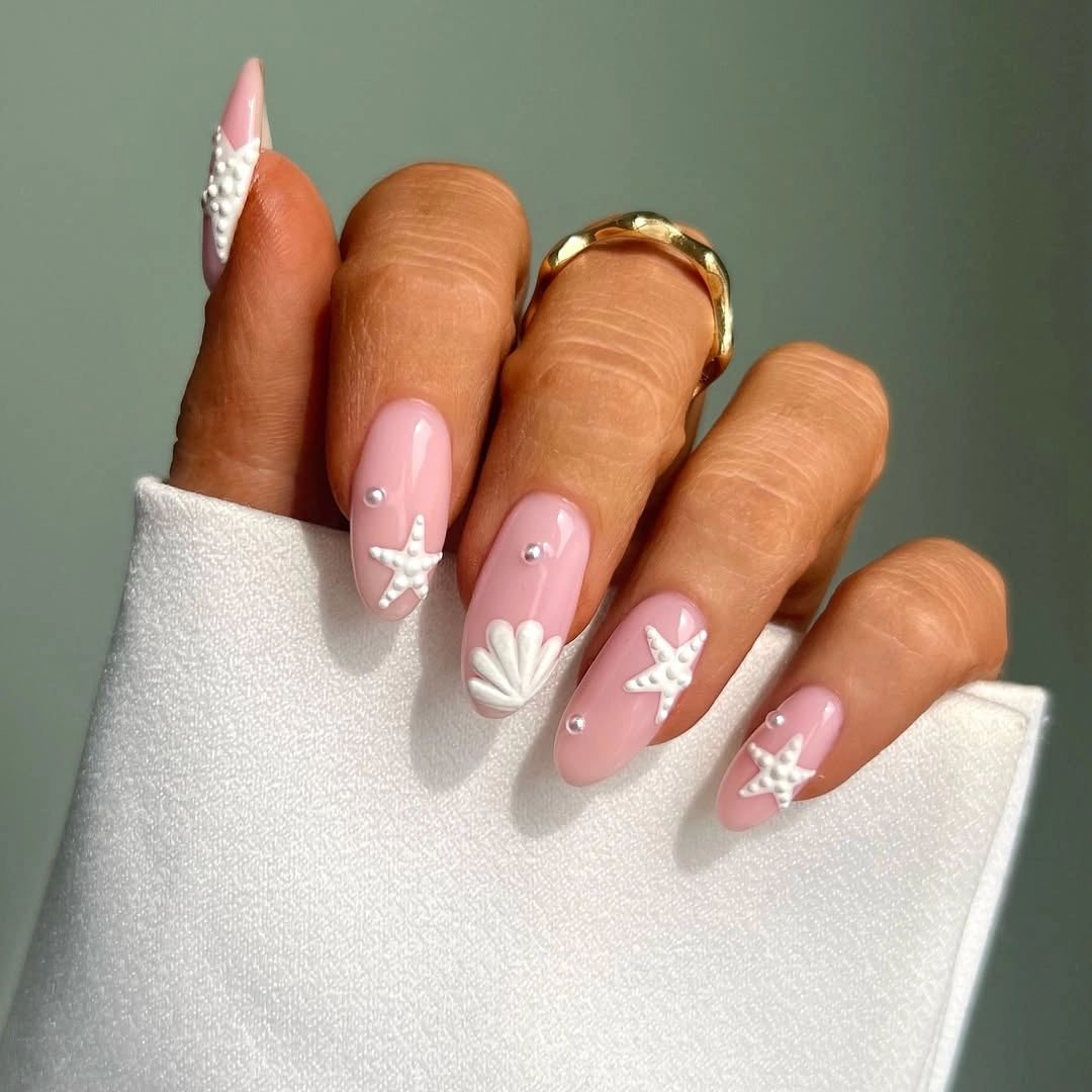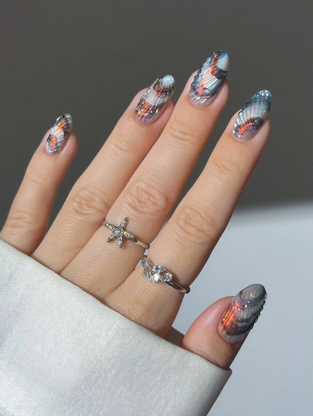 Один із найулюбленіших мотивів — мушлі, перли та морські зірки. Їх зображають як окремо, так і в дуеті, на одному чи кількох нігтях.