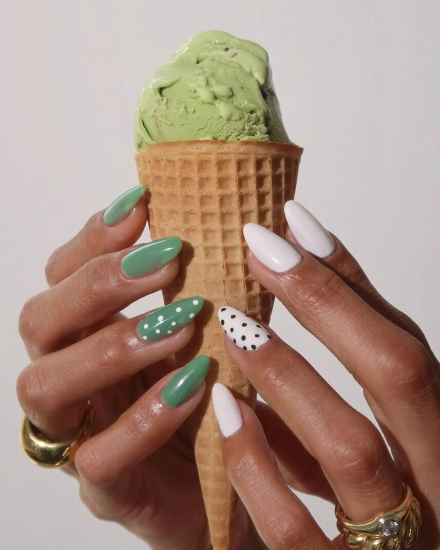 Манікюр у горошок — один із наймиліших та водночас найстильніших трендів цього літа. Принт, який ми звикли бачити на сукнях у стилі ретро, тепер упевнено захоплює нейларт.