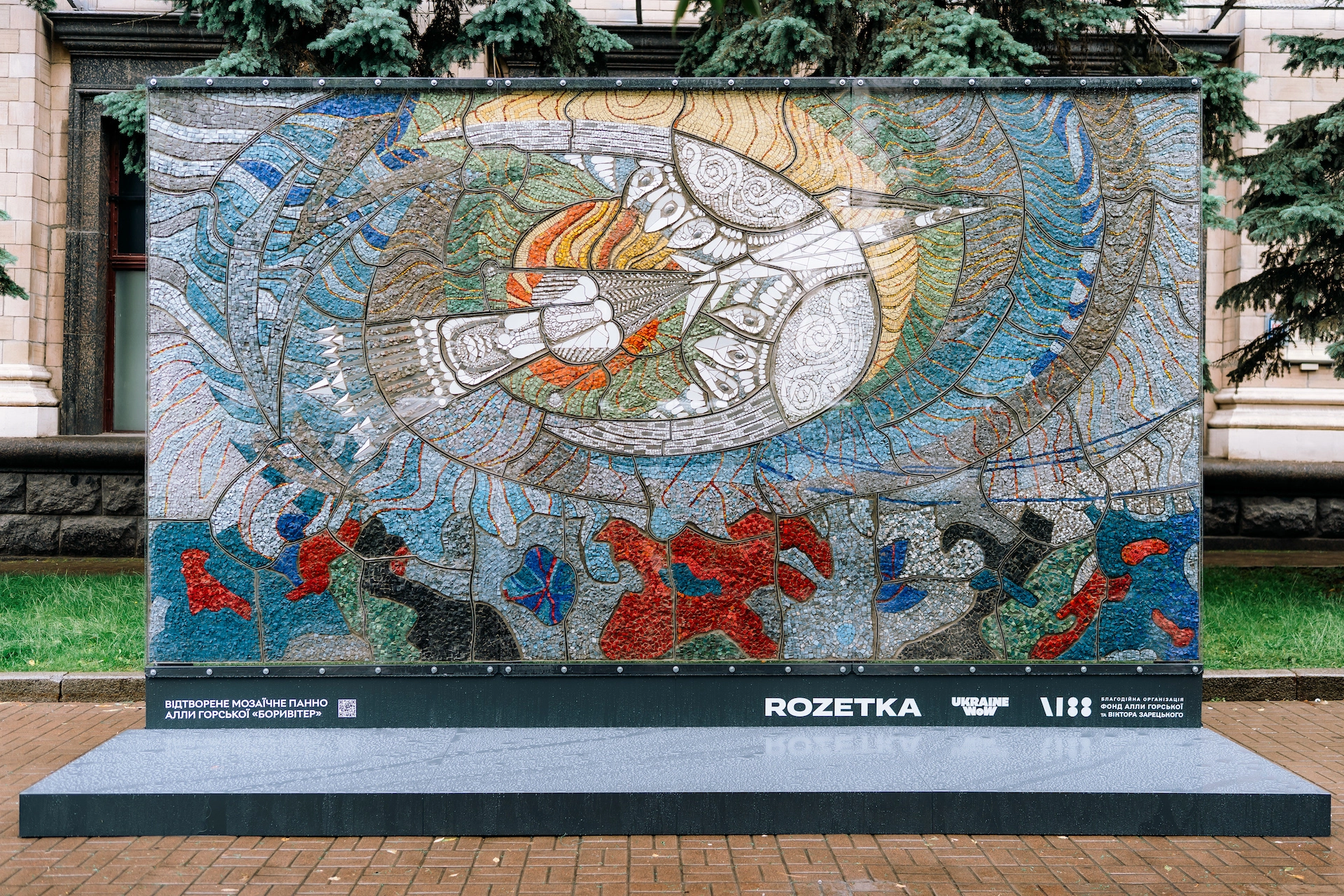 Відтворена мозаїка Алли Горської “Боривітер”, знищена в Маріуполі, вирушає у світове турне – 14 липня у Лондоні її презентує Олександр Усик.