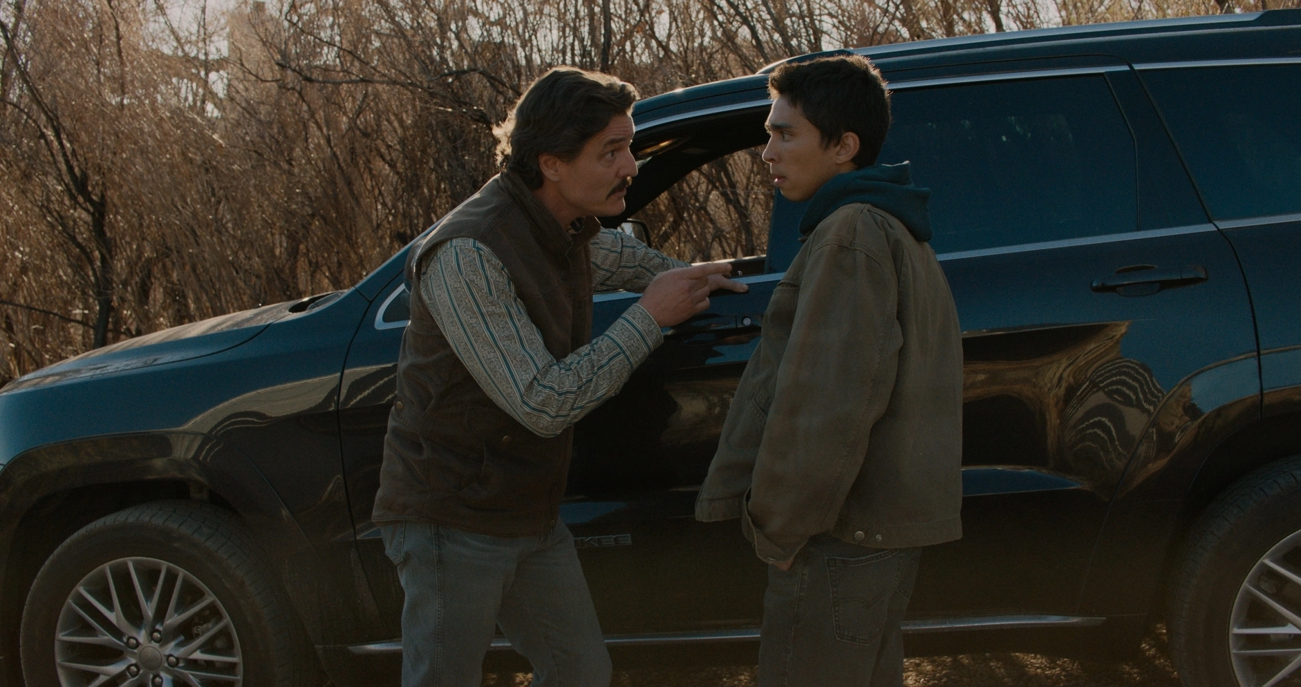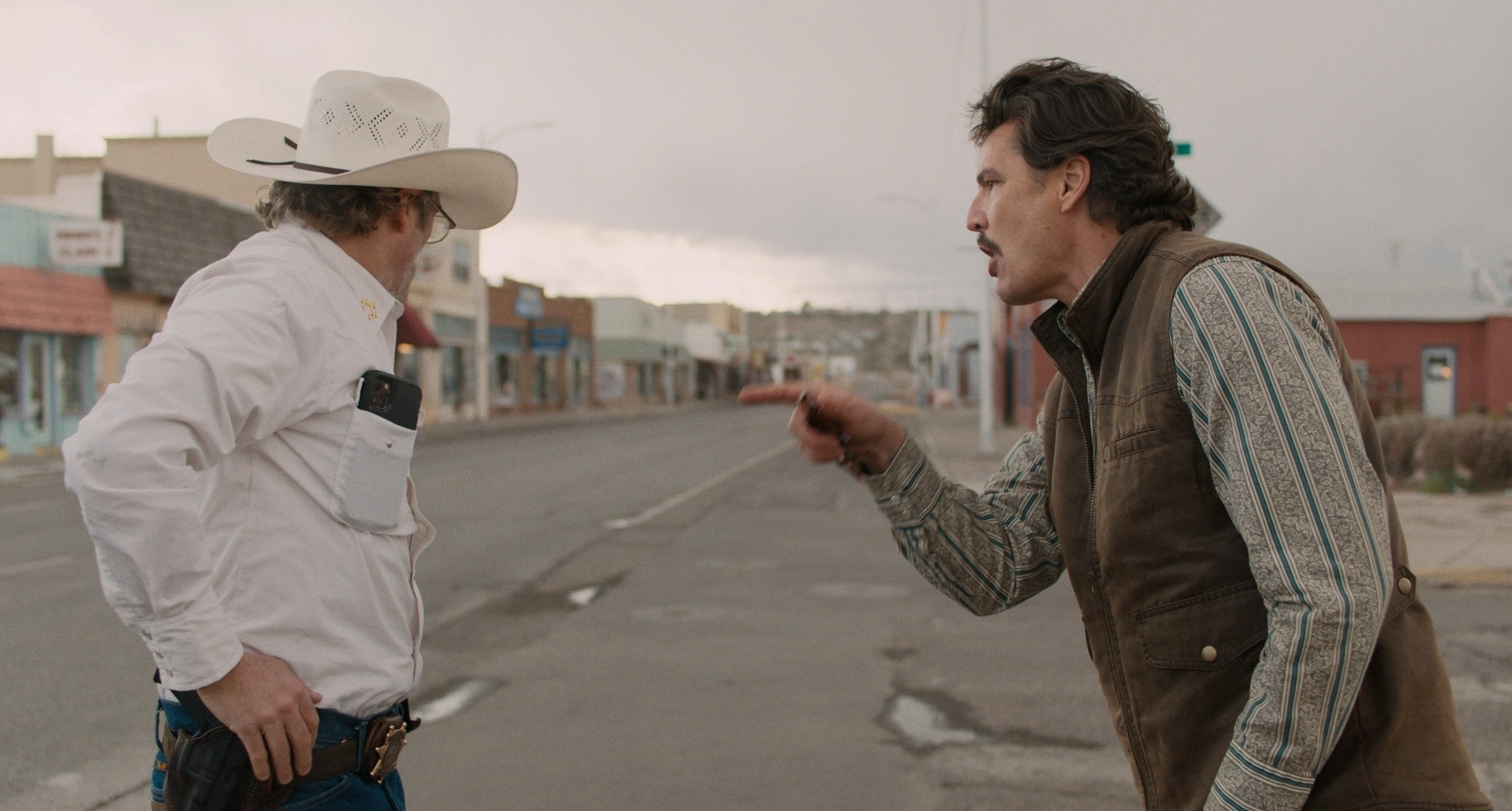 А, ну і, звісно, я не міг пройти повз шанс врізати Гоакіну Феніксу! (Сміється) (у фільмі є сцена, де протистояння між мером Тедом і шерифом Джо переходить у бійку, і перший б’є другого; утім, за словами самого Гоакіна, в першому дублі Педро замість того, щоб насправді вдарити, лише ледь його торкнувся, тож через природну доброту Паскаля сцену довелося кілька разів перезнімати, – ред.)