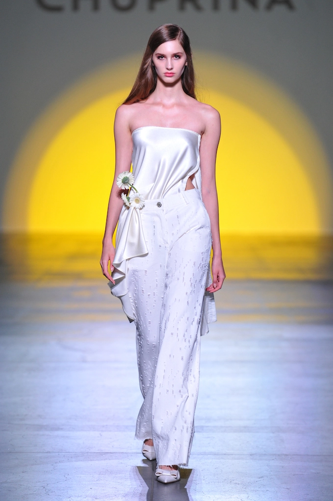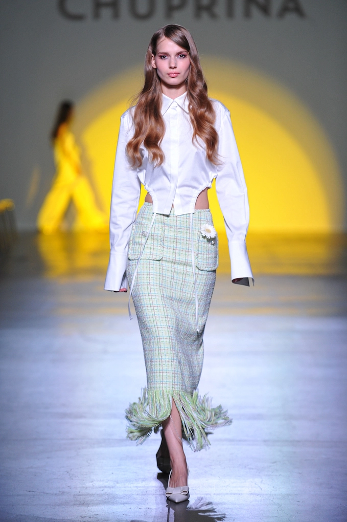 Колекція Chuprina SS’26 – це розслаблена розкіш, що поєднується з новим поглядом на чуттєвість та сексуальність. Дизайнерка використовує м’які пастельні відтінки твіду та артистичні деталі. А візуальним акцентом робить бахрому.