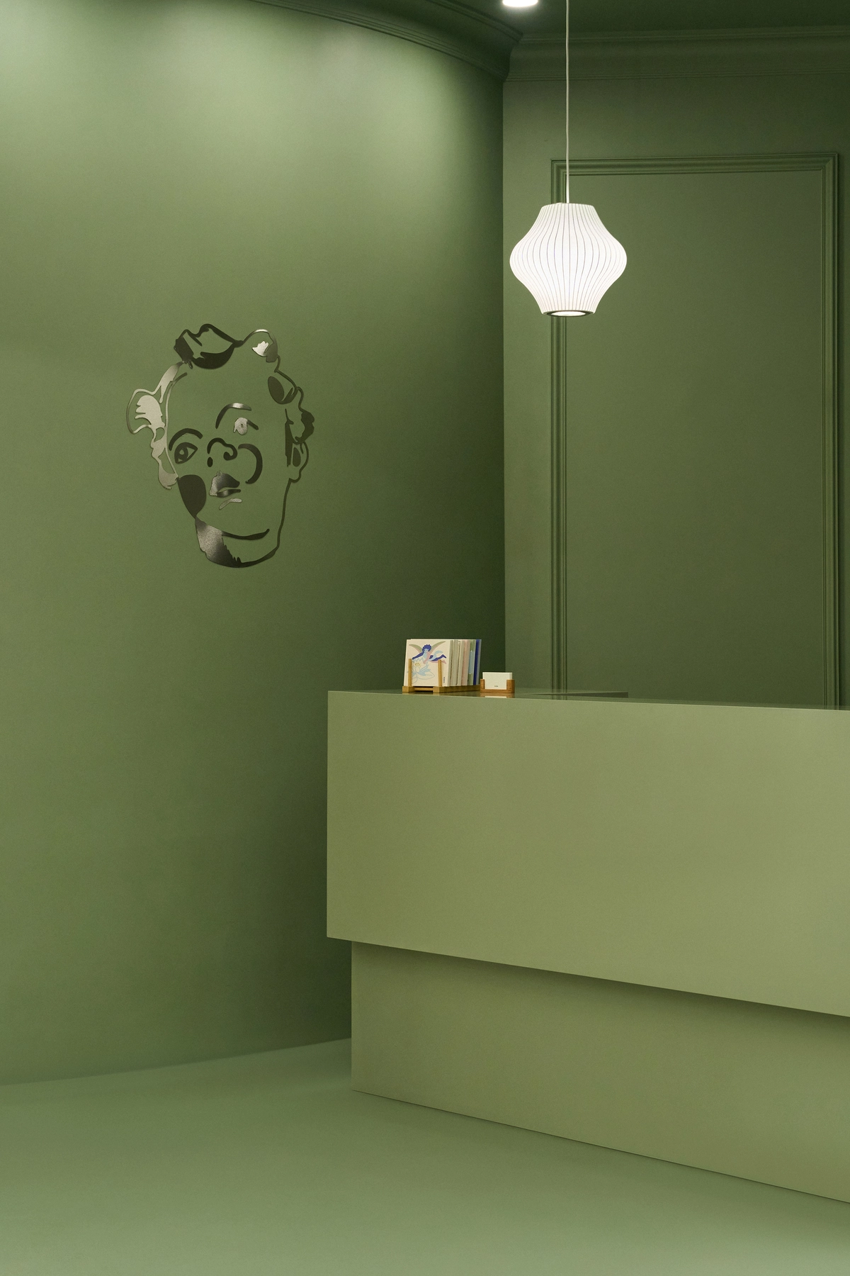 Кольорова гама інтер’єру відсилає до природи та садових прогулянок: блакитний, зелений, нюансний рожевий, бежевий і синій. Використання керамічної плитки перегукується з виробами Gunia Project, а матеріали (метал, дзеркала, прозоре та кольорове скло) створюють легкість і повітряність, тоді як історична деревина додає простору затишку.
