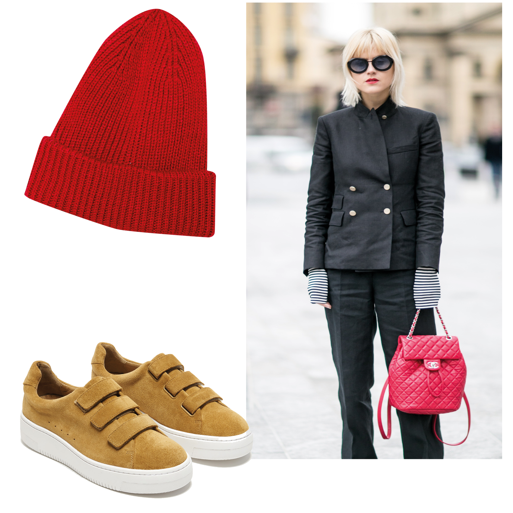 Снікерси у поєднанні з брючним костюмом – це не тільки комфортно та зручно, але й стильно! Доповнити образ можна шапкою-бінні. Спортивні речі сьогодні вже не викликають прямих асоціацій зі спортом.