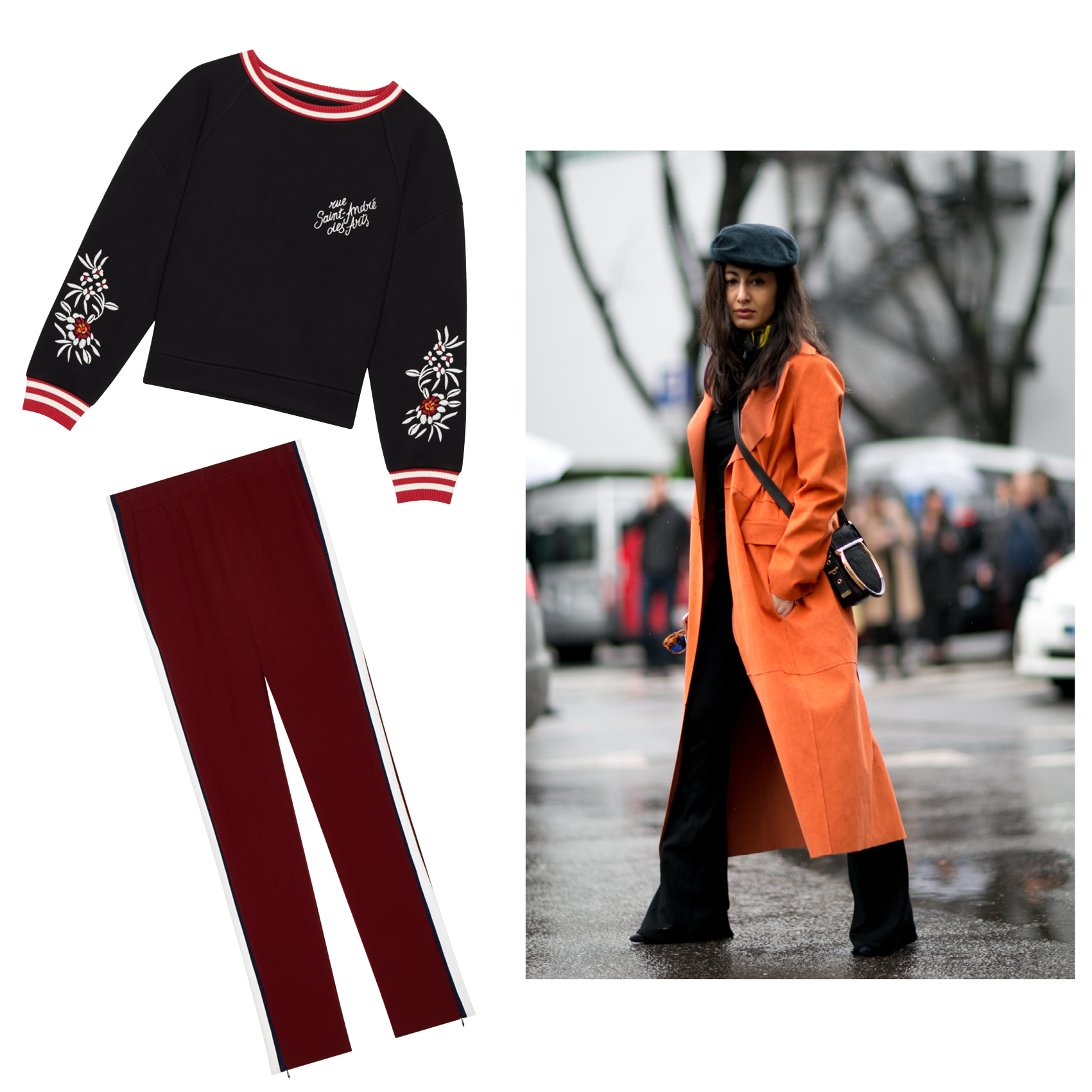 Якщо ви смілива дівчина і вам не потрібно особливо дотримуватися дрес-коду, доповніть світшот і штани з лампасами класичним пальто – ви точно не залишитеся поза увагою.
