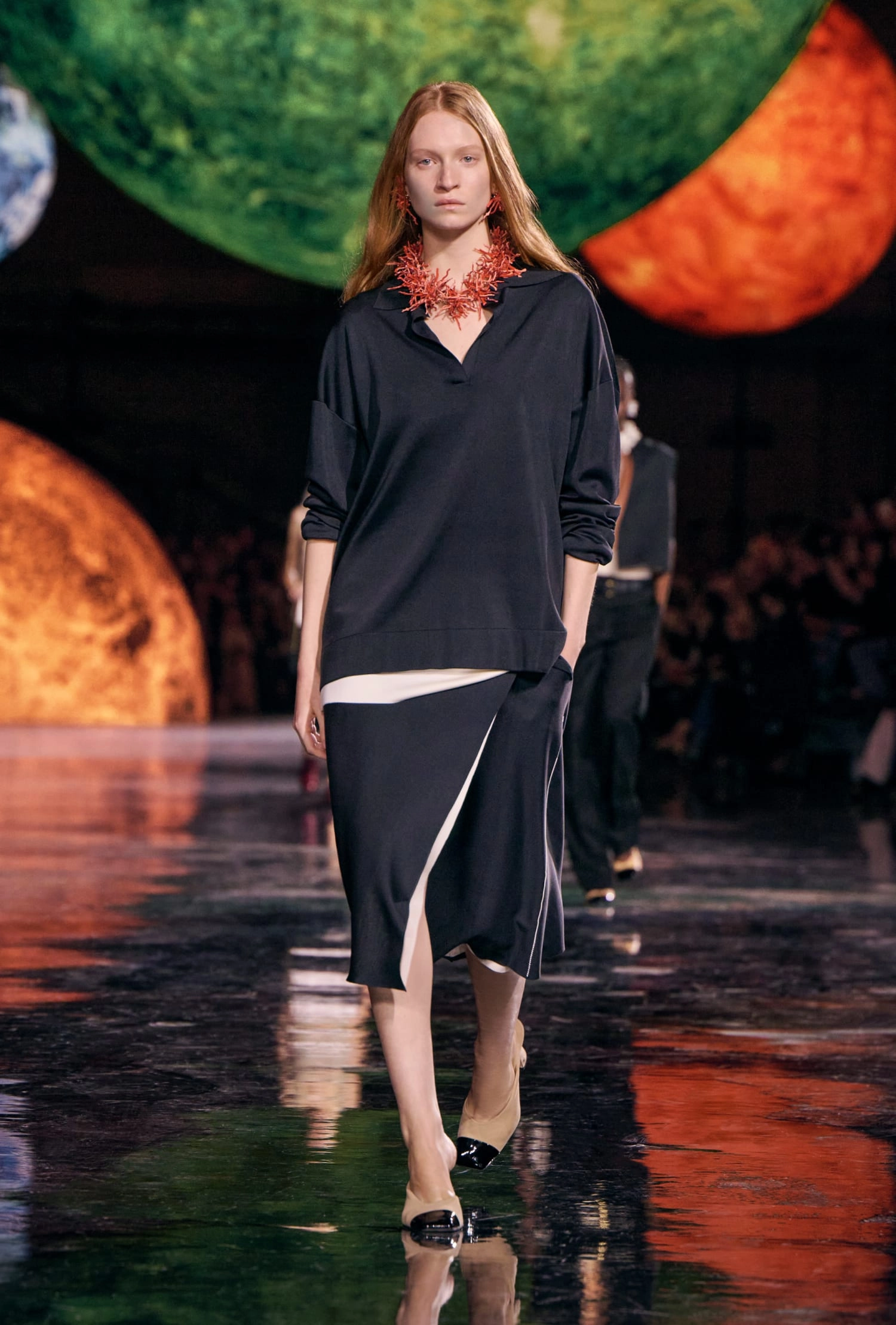 Невід’ємною частиною модного дому були і є прикраси. У новій колекції це – барокові перли, скляні прикраси, емальовані ланцюги. А ще зроблений акцент на взутті з класичним контрастним носком і комфортним підбором. Сукні стали більш універсальними, бо, на думку дизайнера, спадщина Шанель належить усім жінкам.