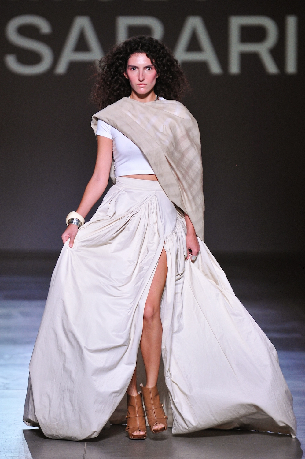 Сайман Ель Сабарі – молодий український дизайнер із єгипетським корінням. На New Names він представив колекцію Akhet, натхнену концептом горизонту, де сходить сонце, точкою переходу від темряви до світла. Завдання колекції – переосмислити момент трансформації як символ відродження, нових початків та нескінченних можливостей.