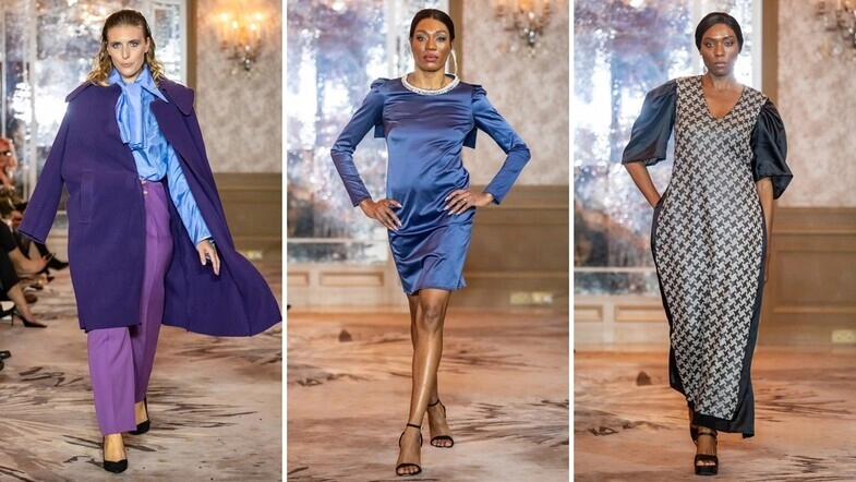 Ira Langevin — модний дім, заснований дизайнеркою, драматургинею та дипломатом Ірою Лангевін, представив колекцію «She Who Knows». Це — не просто колекція, це маніфест. У ній розгортається вражаючий діалог між ніжністю та силою: скульптурні силуети зустрічаються з текучим рухом. Ефірні сукні в лавандових градієнтах ширяють, мов туман, виконані з делікатно плісированих тканин, що спадають по тілу з невагомою грацією. Чорно-білі геометричні композиції додають графічної різкості, а об’ємні білосніжні образи з пір’яними акцентами створюють відчуття небесної чистоти.