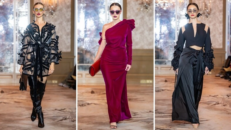 Сміливі відтінки червоного та електричного синього викликали відчуття радості й ностальгії, тоді як чорно-білі образи додали драматизму завдяки ручній вишивці золотом та оксамитовим фактурам. Кожен образ балансував між традицією і фантазією, втілюючи дух жінки, яка одночасно сильна й поетична, вкорінена у спадщині, але не боїться мріяти.