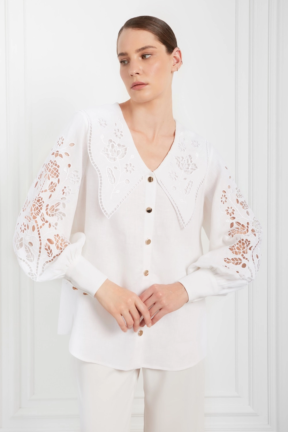 Остання колекція «Дерево життя» від FOBERINI — теж чудовий вибір для святкового луку. Чого лише варта витончена лляна блуза з флористичною вишивкою, виконаною у техніці витинання!