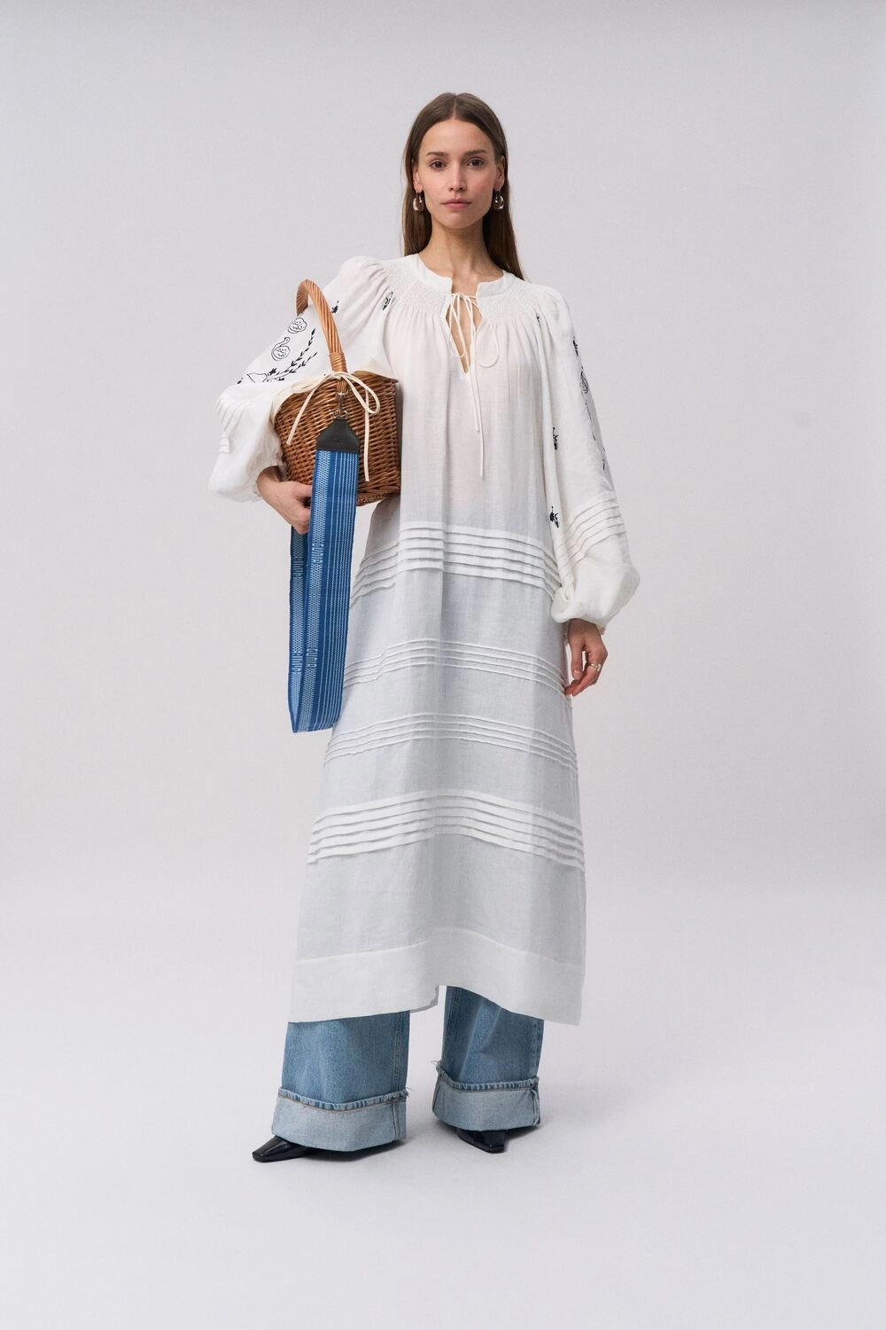 У колекції також є сукні у довжині міді, легкі топи, подвійні фартухи, косинки та коміри — всі деталі, які можна міксувати між собою та перетворювати на особливий стильний наратив не лише на Великдень, а й упродовж усього теплого сезону.