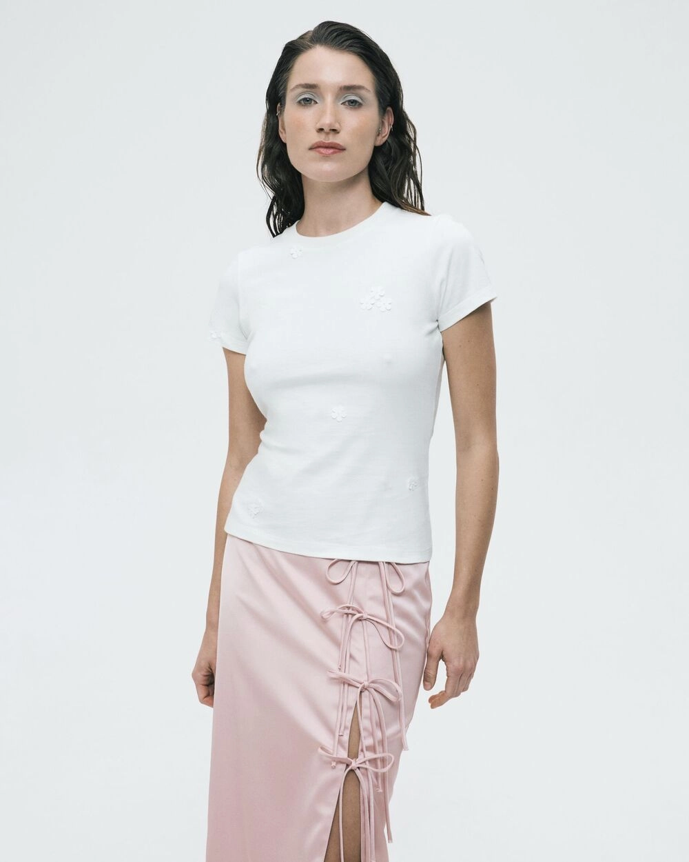 Пастельна палітра колекції звучить по-новому у дуеті з акцентними зав’язками, об’ємними аплікаціями та делікатними напівпрозорими елементами.