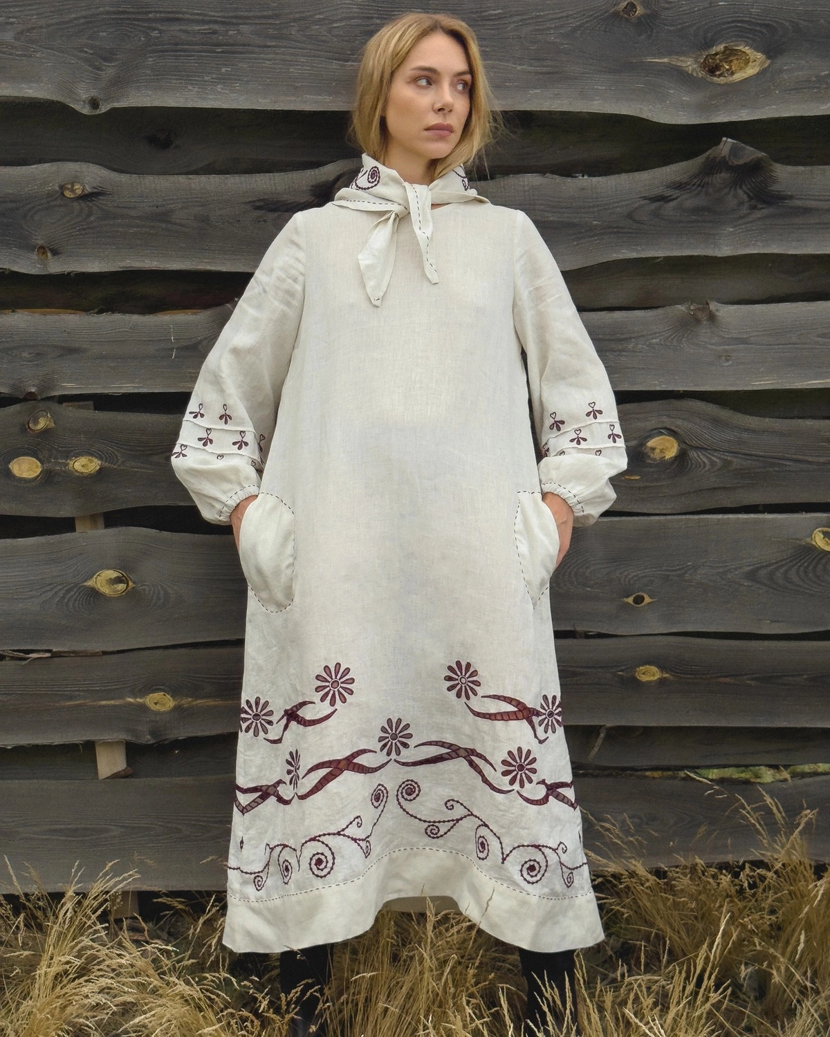 Бренд EMBR GEM пропонує відсвяткувати День Незалежності у вишитій сукні «Намистина». Виготовлена з натурального льону кремового відтінку, ця сукня прямого крою максі довжини поєднує комфорт і стиль. Унікальна авторська вишивка, створена руками української художниці Лесі Станкевич, додає виробу глибокого символізму та неповторної енергетики.