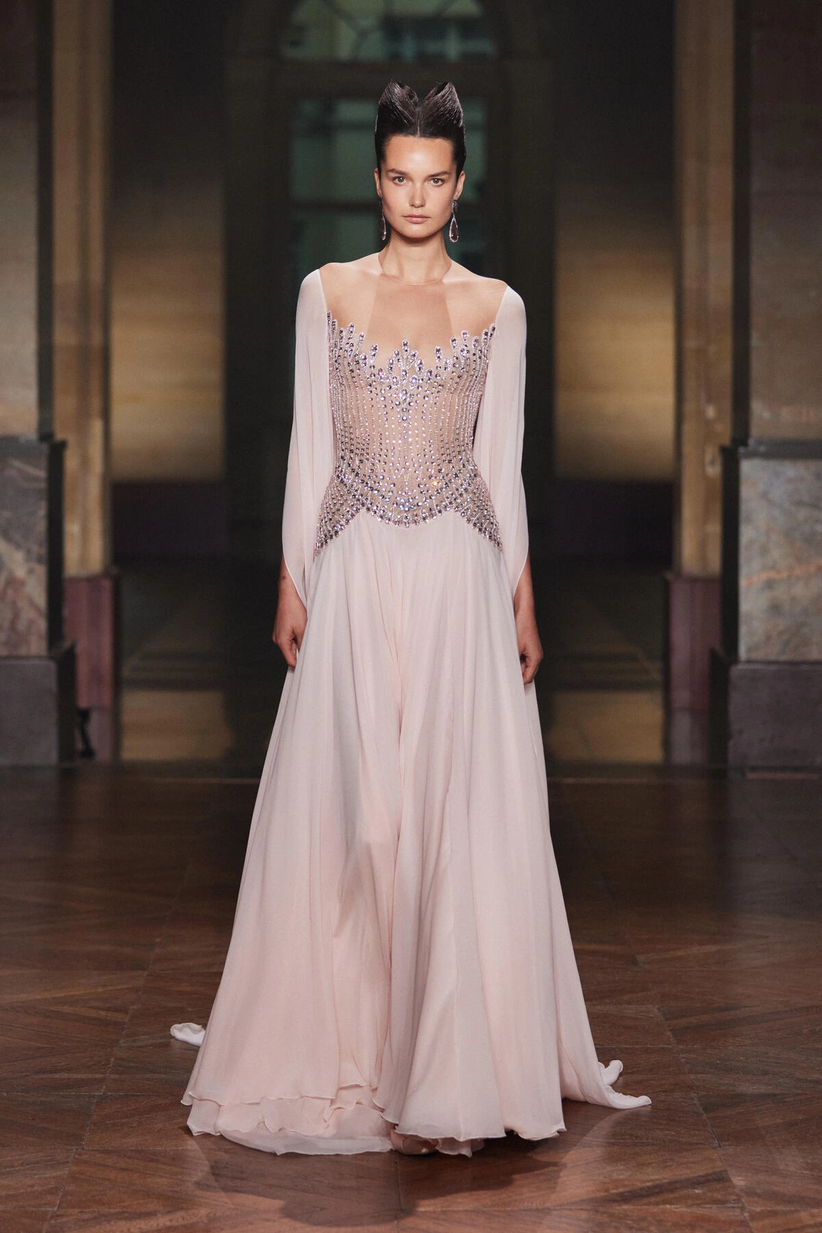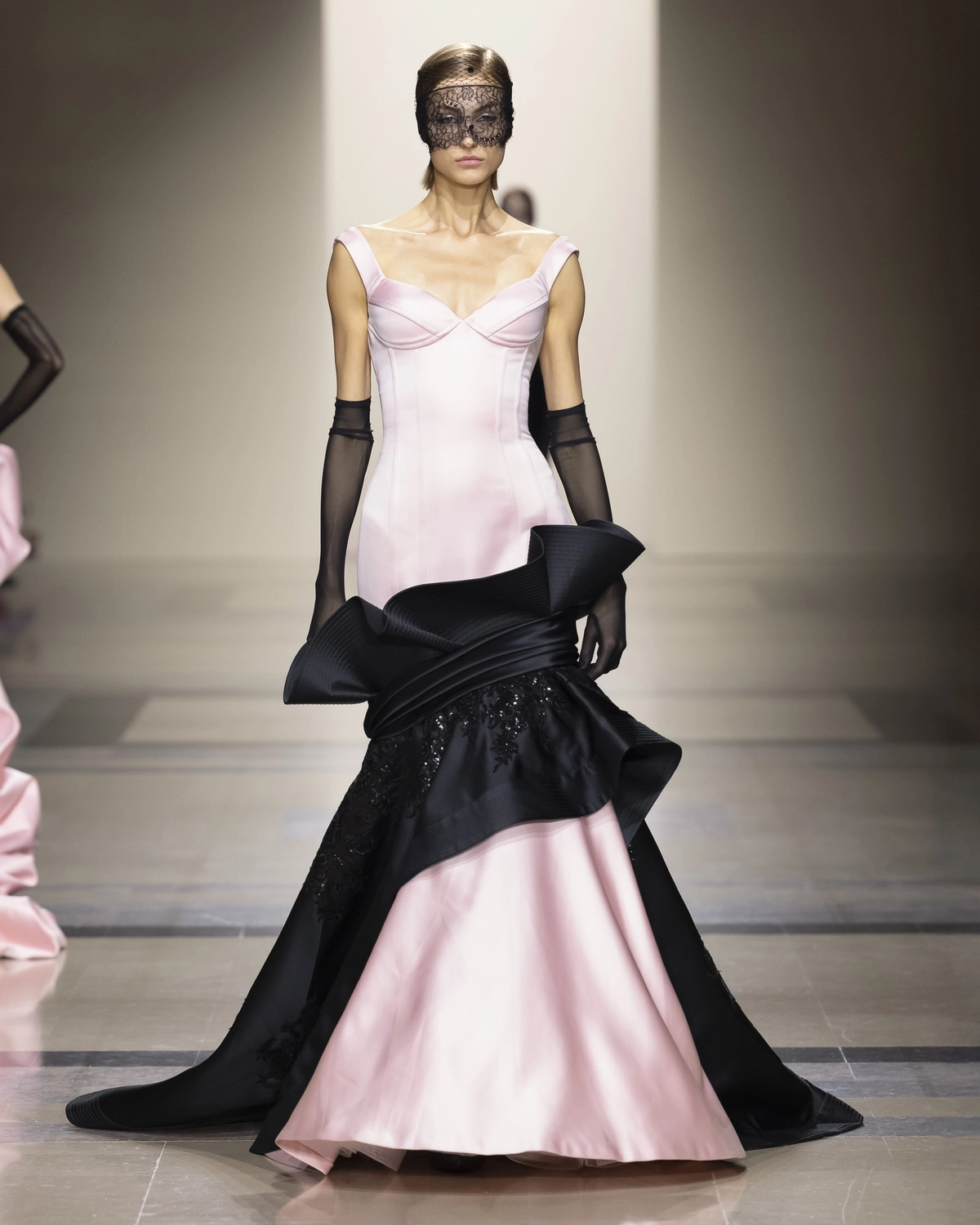 Новою колекцією Georges Hobeika відзначає 30-річчя бренду. Під назвою «Новий порядок», вона відображає пошук краси у світі метаморфоз. Хобейка повертається до коренів високої моди, підкреслюючи важливість точних ліній, деталей і традицій.