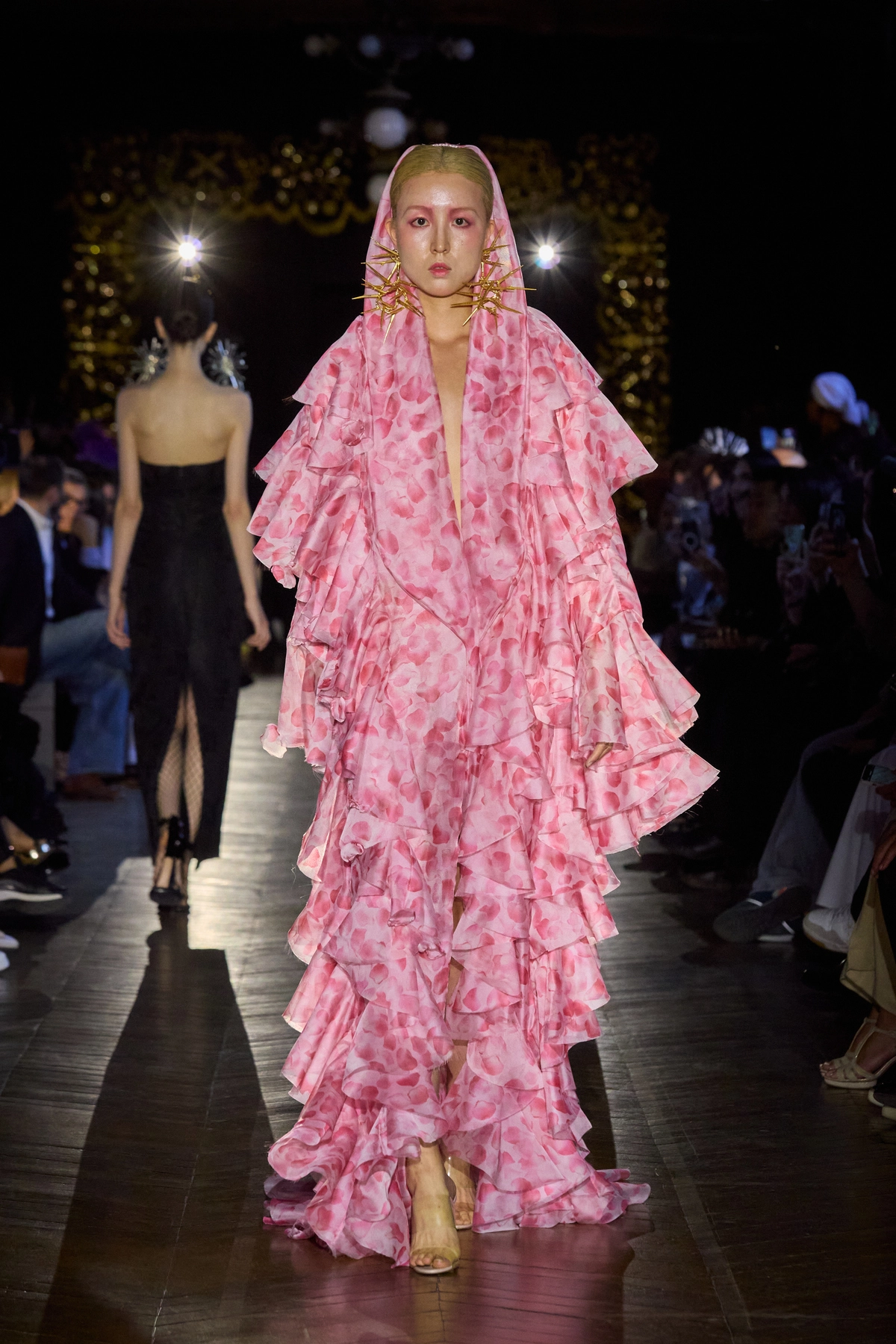 Медитативна подорож крізь сім суфійських стадій кохання від Rahul Mishra занурює в трепет почуттів. Кожна сукня — мов вірш у поемі про кохання, де тканина стає диханням, а вишивка — пульсом.