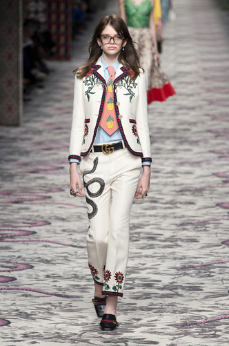 Так це сьогодні і працює: Будинкам вже складно зачаровувати клієнтів традиційними промислами. На жаль, вишивка, яка, безумовно, є одним з найкропітніших ремесел, вже настільки давно йде пліч-о-пліч з модою, що ті ж Valentino навіть не згадують, скільки майстрів працює над однією їхньою сукнею – цим більше нікого не здивуєш. Інша річ, якщо забезпечити свій «гербарій» якісним сторітлінгом. Ось у Gucci, наприклад, мова про змішування епох – розповідь про зустріч на куртці орнаментів XVII століття та силуетів 1980-х – видає образ не простої заможної споживачки, а натури тонкої та розуміючої.