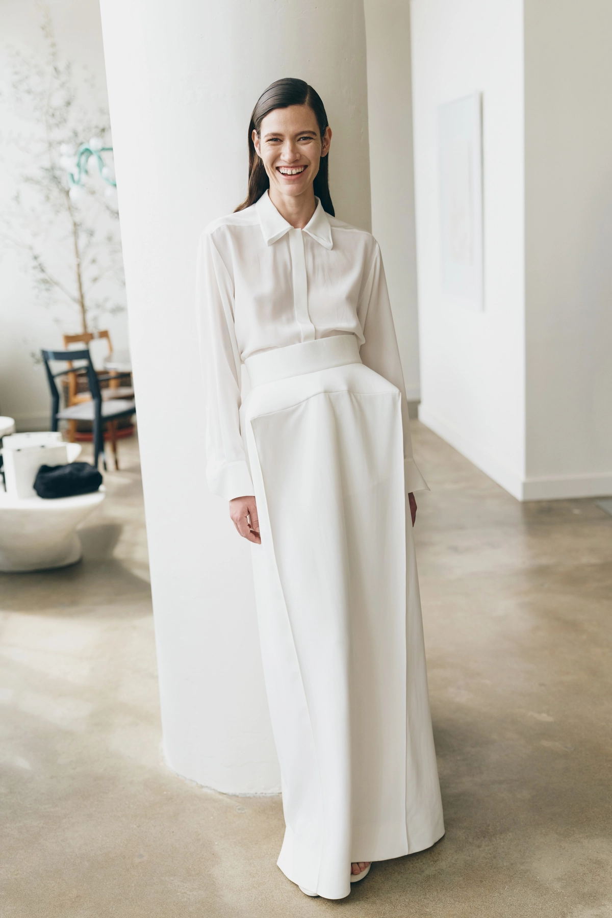 - Сукні — скроєні з одного квадрата, з акцентом на чисті лінії та геометрію.