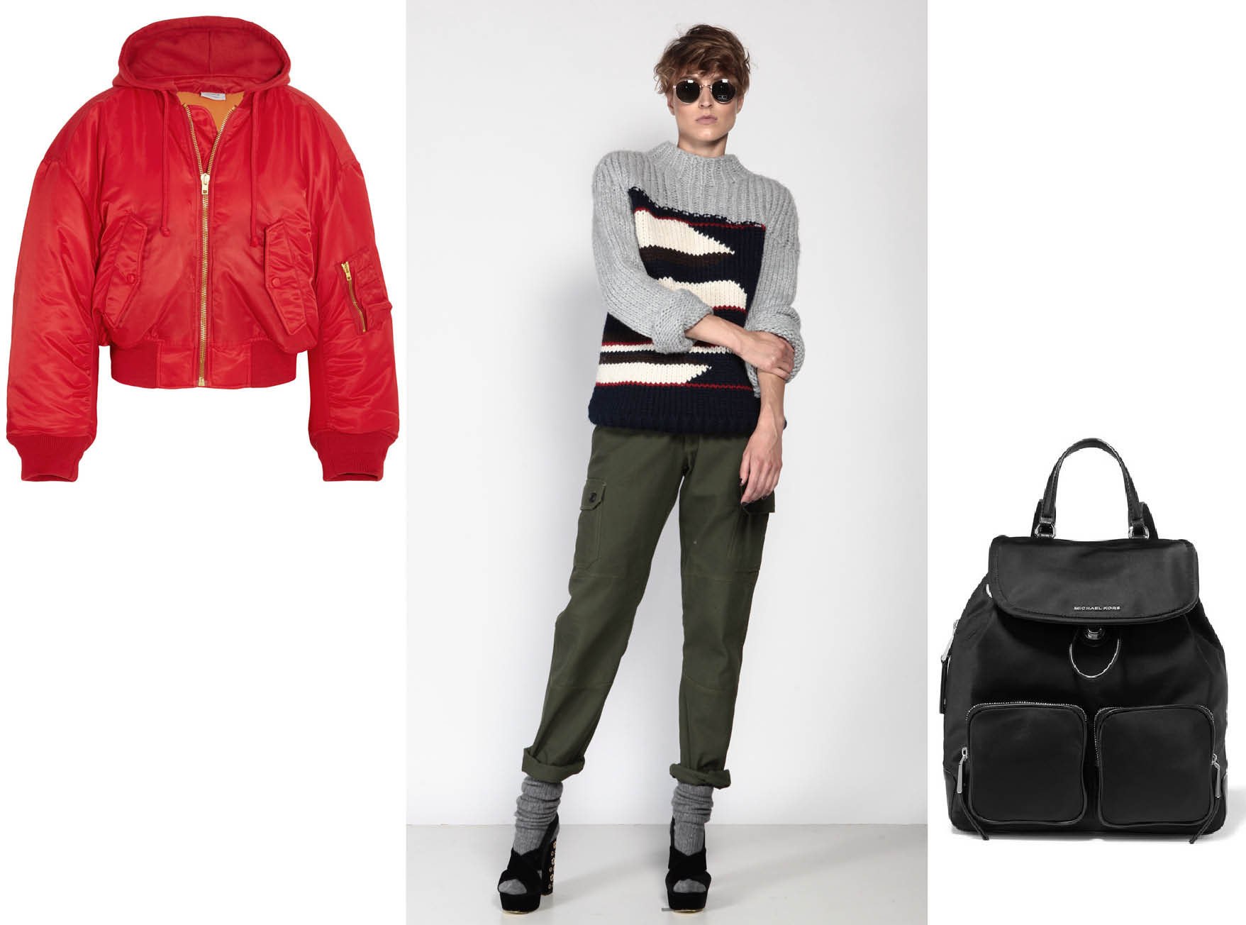 На моделі: светр, ELENA GOLETS; штани, S. OJIVER; окуляри, ILLESTEVA; босоніжки, ZARA; гольфи, CALZEDONIA; бомбер, VETEMENTS; рюкзак, MICHAEL MICHAEL KORS