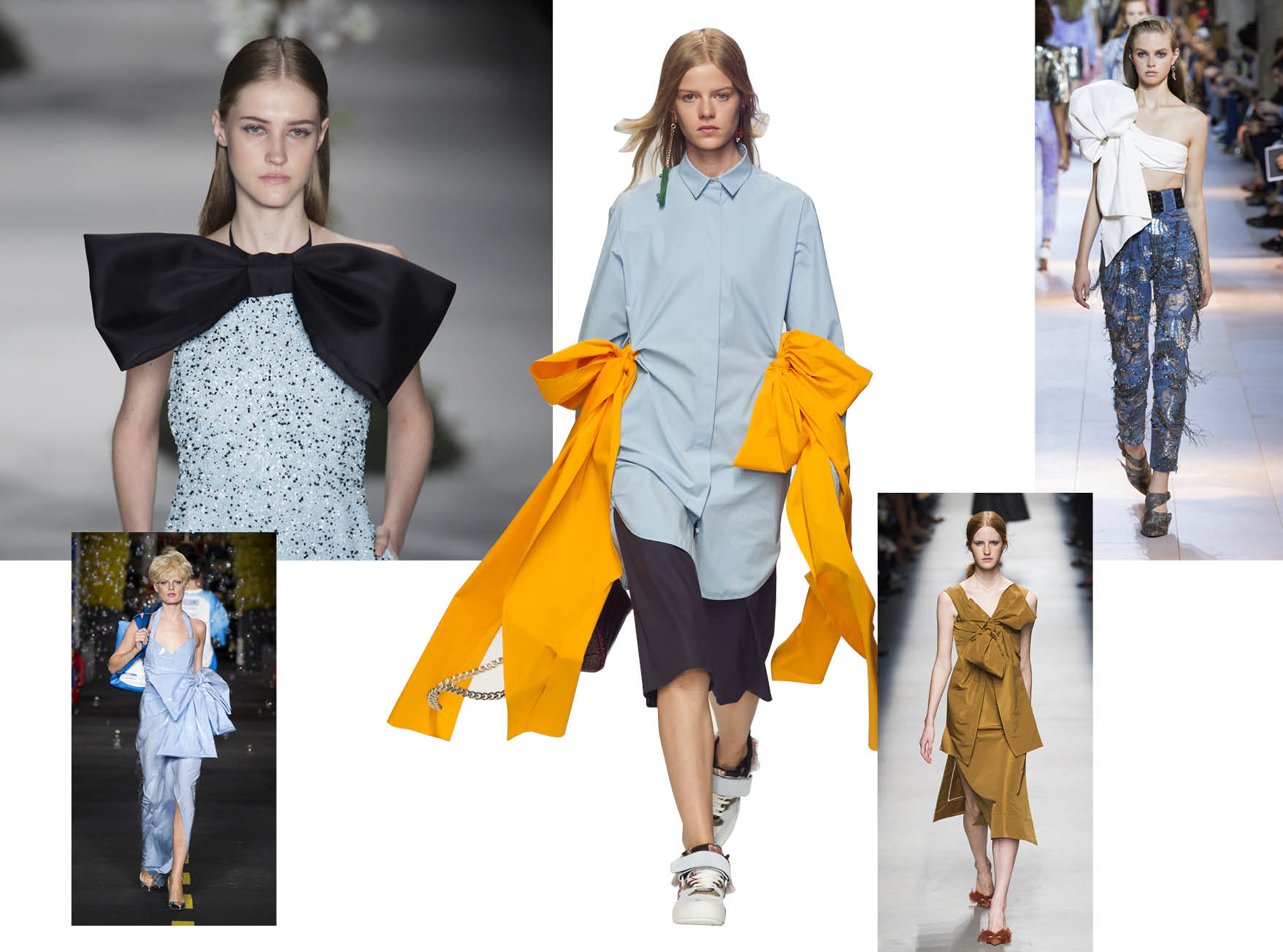 Для багатьох із нас бант досі залишається чимось із дитинства, що мами хотіли обов’язково пов’язати у нас на голові, а ми зняти. У будь-якому випадку з того часу ми пам’ятаємо: бант — це декоративно та святково. Тому носити банти у вечірньому варіанті, як і раніше, доречно, особливо якщо спробувати надіти кітчеву, наприклад вечірню сукню в дусі нарядів серіалу «Династія». Щось подібне в новому сезоні показує Джеремі Скотт для Moschino, демонструючи, як виглядати сьогодні, якщо ви хочете бути схожим на подарунок.