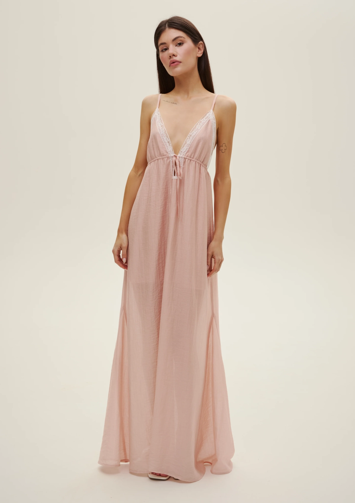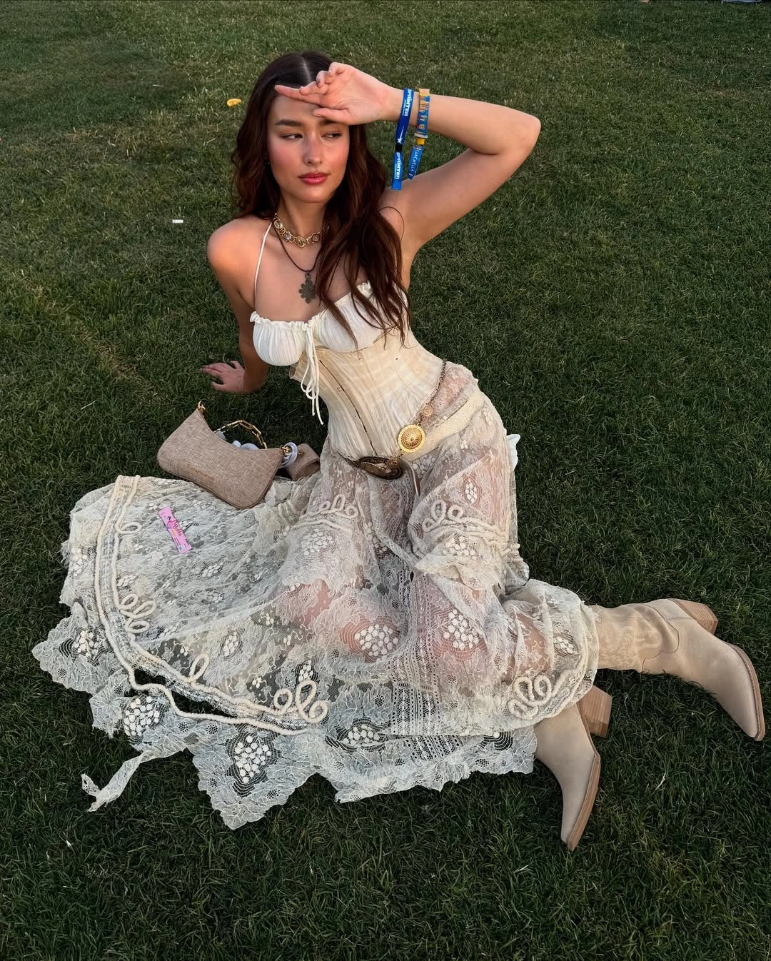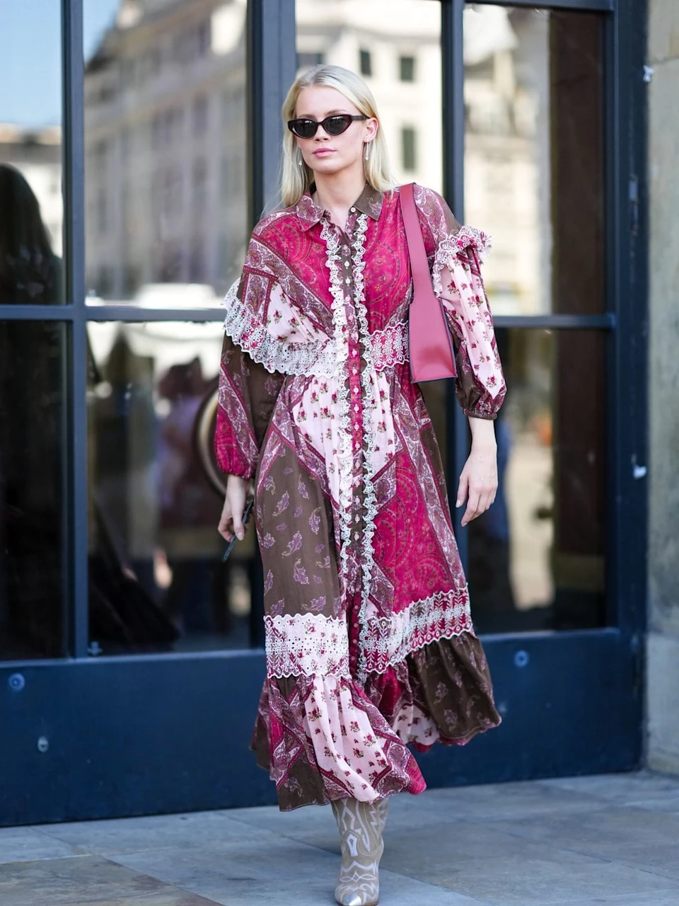Ще одна універсальна річ у бохо-гардеробі — сукня-комбінація. Її ключові риси — тонкі бретелі, делікатне мереживо, легкі й струмливі тканини на кшталт шовку чи віскози. Така сукня чудово передає богемний настрій, а завдяки своїй лаконічності легко адаптується до різних образів.