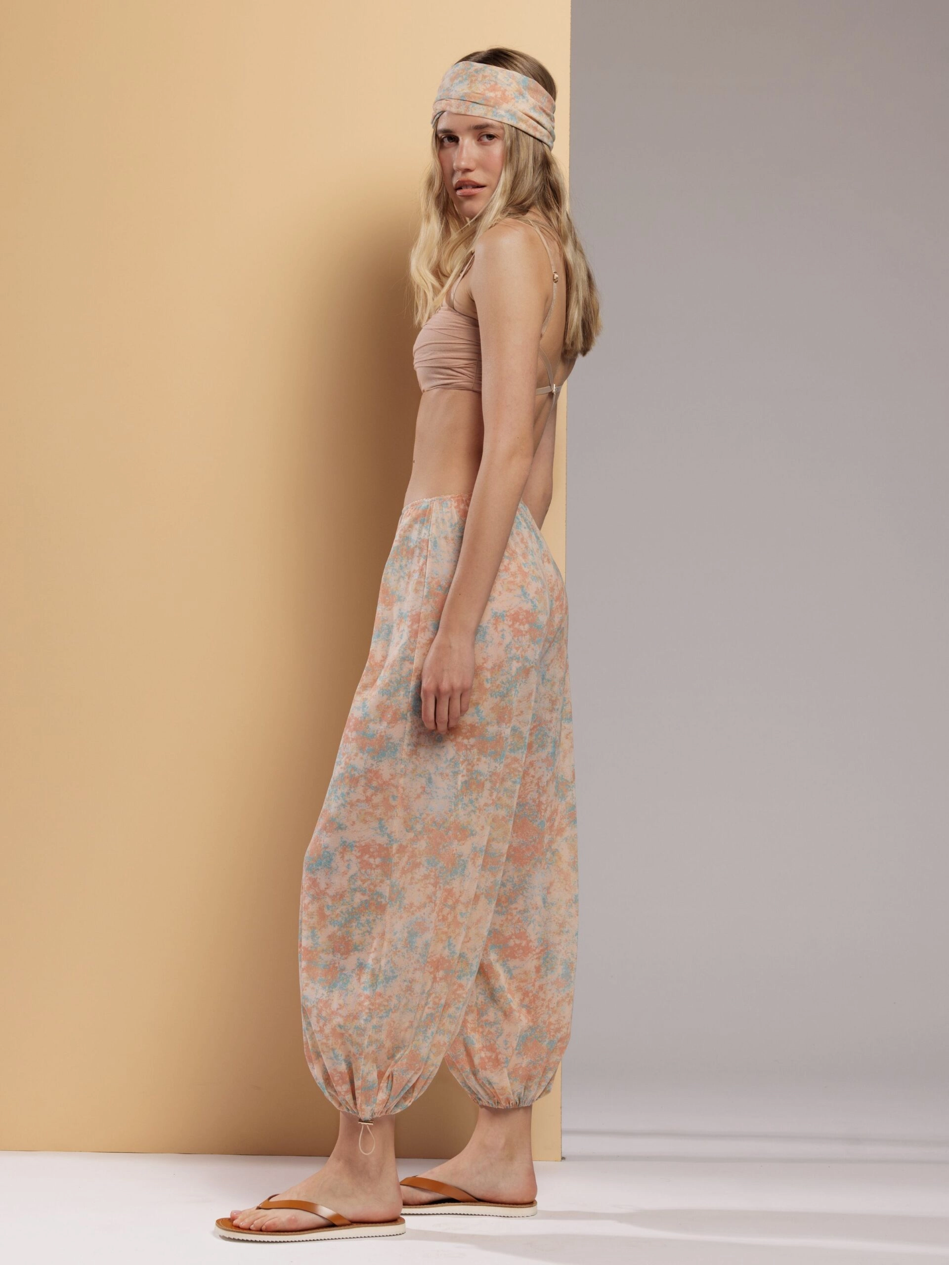 Штани в стилі бохо вирізняються вільним кроєм — від просторих силуетів до більш приталених моделей, що звужуються донизу. Вони переважно виконані з натуральних тканин, які гарантують комфорт і легкість у носінні. Колірна палітра може бути як стриманою, так і прикрашеною етнічними орнаментами, а декор часто доповнюють зав’язками, мереживом чи дерев’яними ґудзиками.