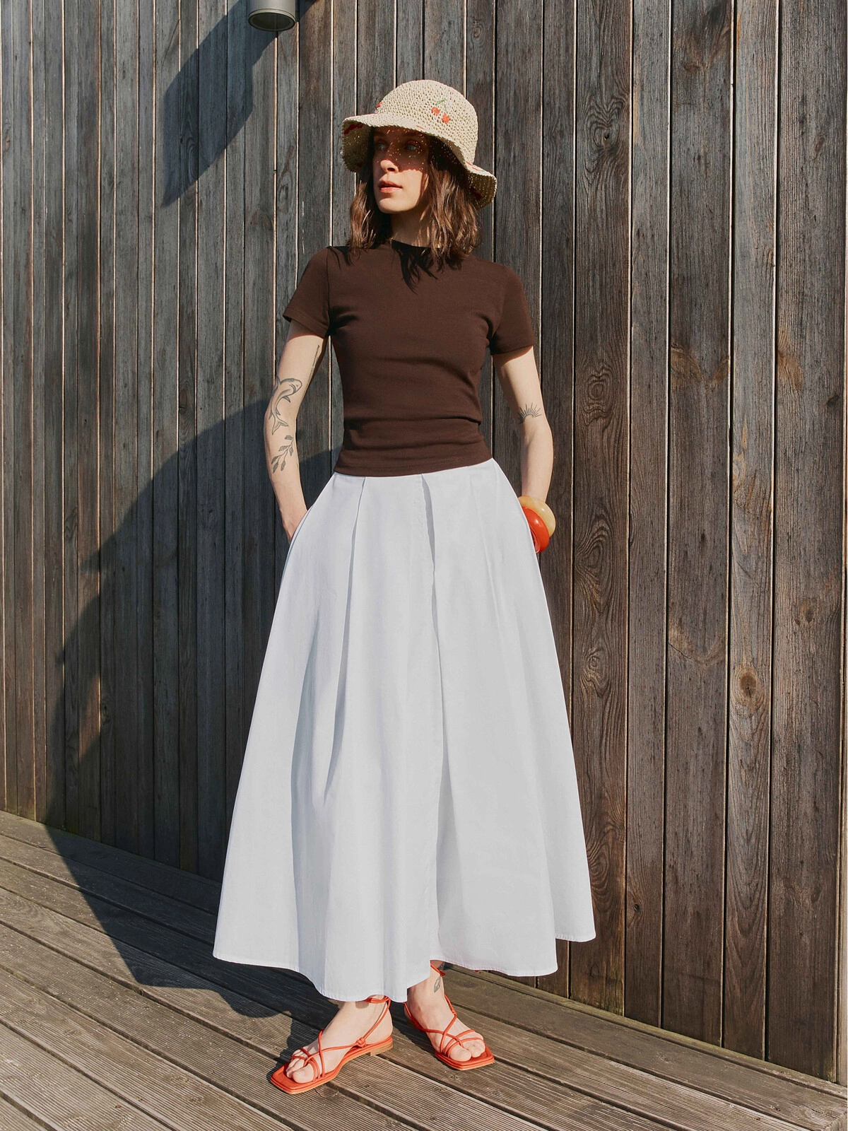 Для стилізації підійде класична біла футболка, в’язаний топ кроше або повітряна лляна блуза — в залежності від вашого настрою та нагоди.