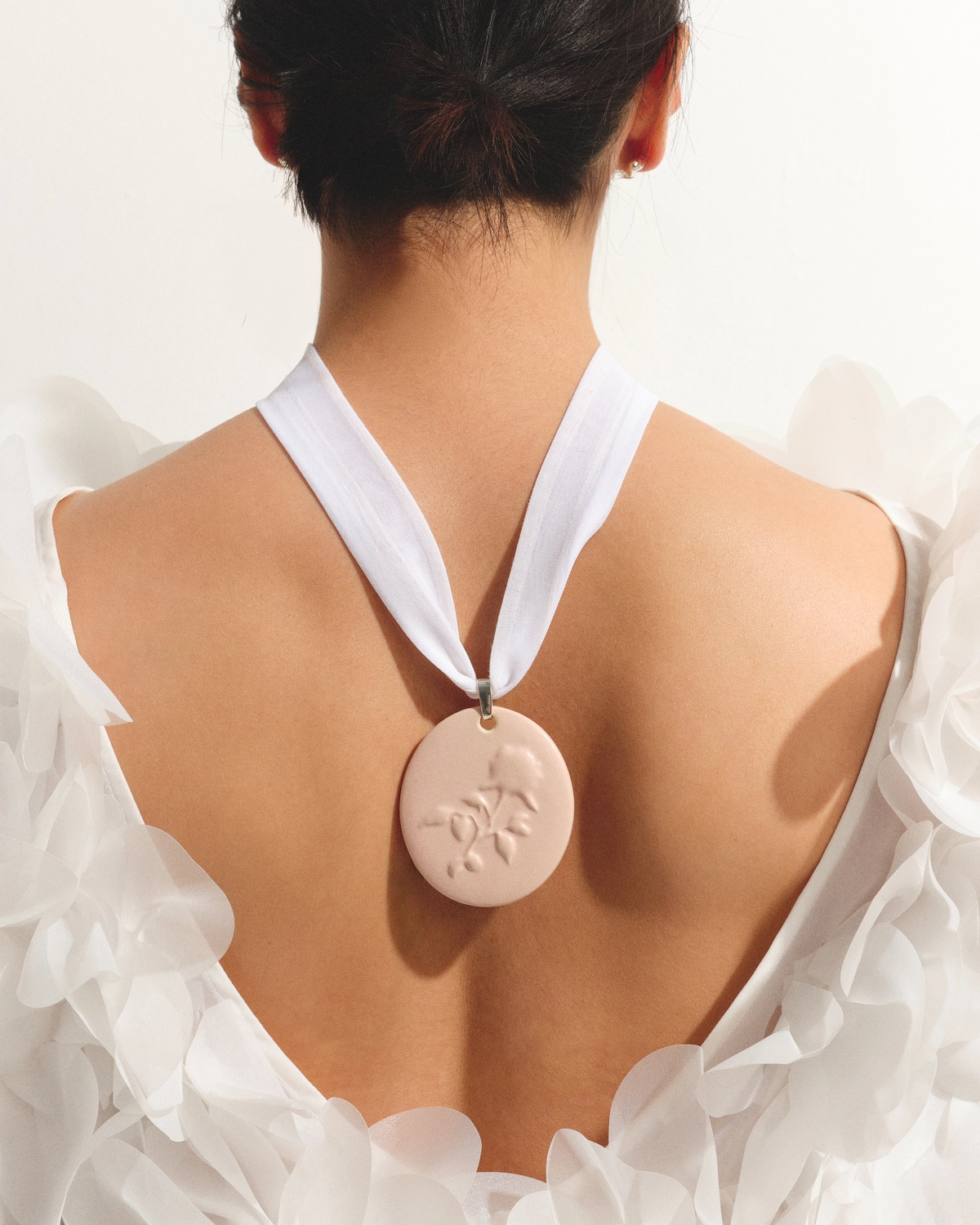 Ще одна яскрава колекція — AMORE від TSVITE TEREN. Її головними символами стали троянда, що розповідає про полярність любові та птаха — вільна й невловима, як справжнє почуття. В колекції бренд презентує уже традиційні для себе прикраси з кераміки та ювелірні вироби зі срібла й натурального каміння — кольє, каблучки, сережки та підвіси.