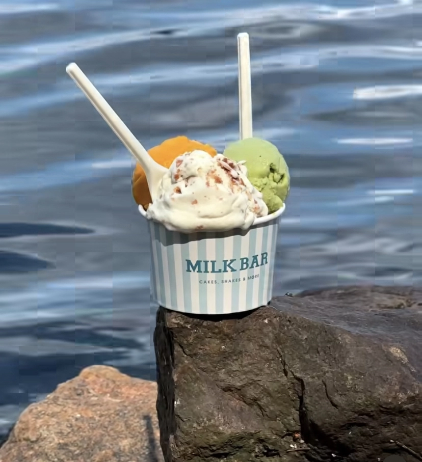 Один із моїх фаворитів липня — відерце з морозивом від Milk Bar у смаках «Ваніль» та «Київський торт». Це не просто десерт — це мініритуал. Момент тиші після стресового дня, коли можна сховатись вдома, ввімкнути улюблений фільм, і дати собі те, що «не щодня». Це мій спосіб сповільнитись.