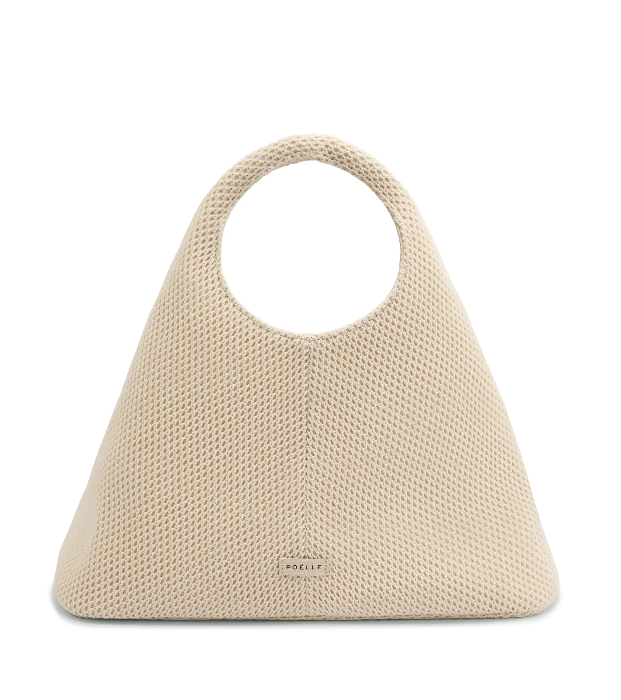 І третій фаворит липня — неймовірно стильна сумка від Poelle. Вона має архітектурний, майже скульптурний вигляд, але водночас залишається м’якою, гнучкою та комфортною в носінні. Подобається, що її можна стилізувати практично з будь-якими літніми луками: лляними сукнями, штанними костюмами, джинсами, спідницями та навіть пляжним вбранням.