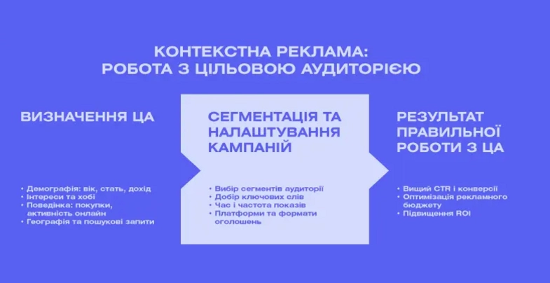 Для цього важлива сегментація аудиторії у контекстній рекламі, тобто поділ за певними ознаками: