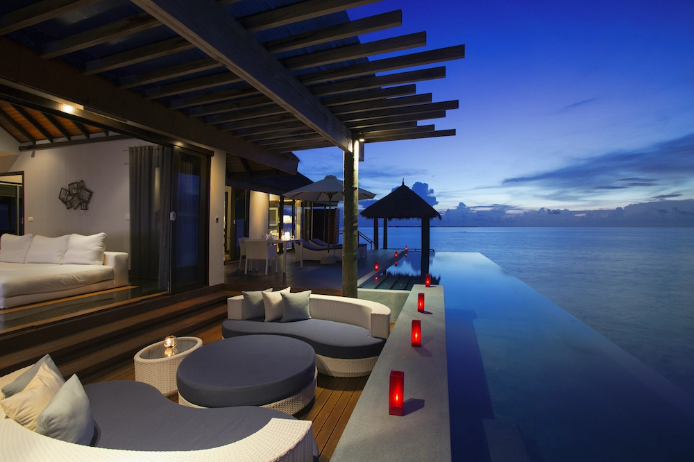 Найбільше вражає Water Suite вілла площею 270 квадратних метрів, що здіймається на палях над кришталевими водами. Тут є скляна панель в полу вітальні, приватний бар та каскадний басейн з обідньою. Атмосферу ексклюзивності доповнює особистий батлер (дворецький), який допоможе гостям почуватися по-королівські.