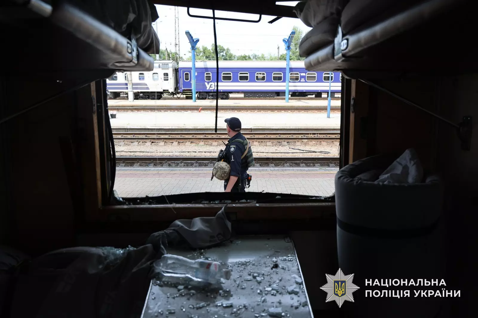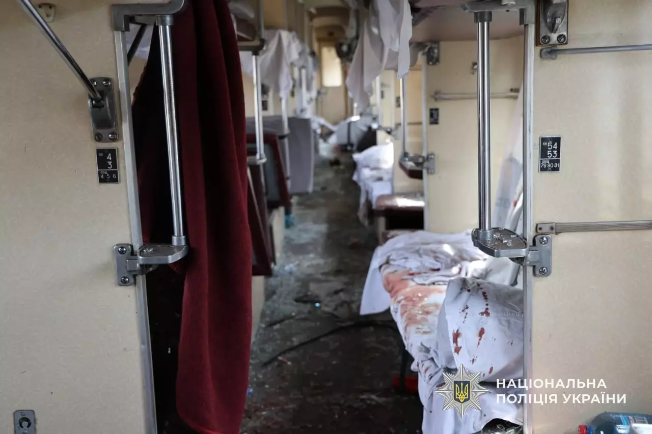 В результате российского ракетного удара был поврежден пассажирский поезд, в результате чего были травмированы люди, которые на момент удара находились в вагоне.